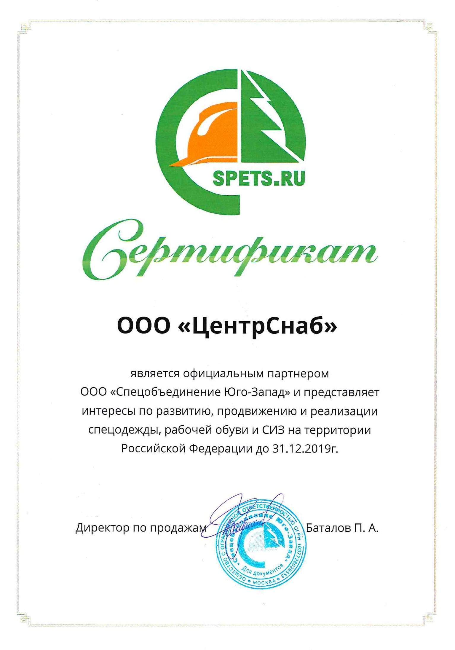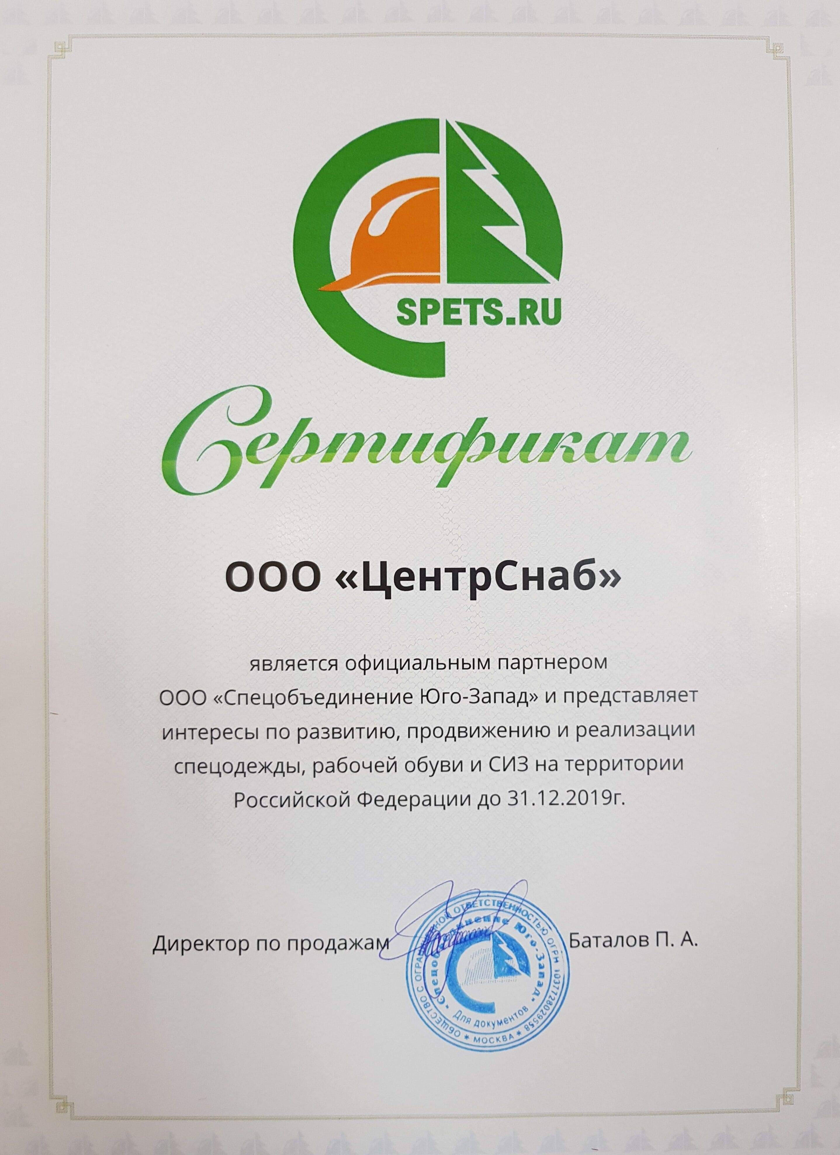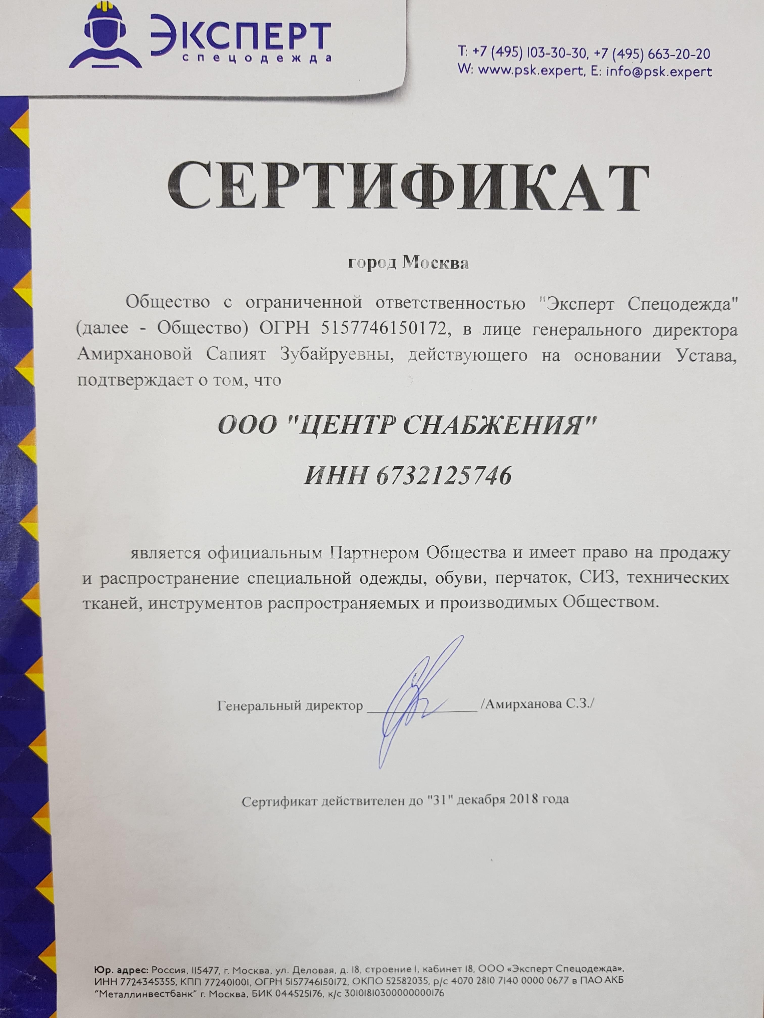 Сертификат, г. Москва